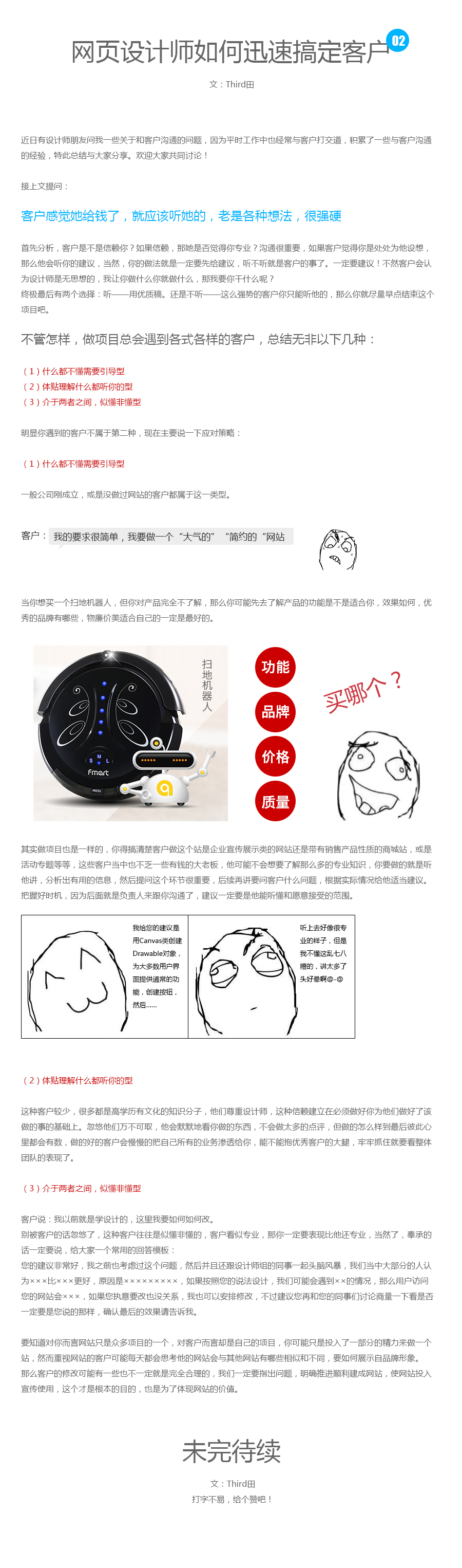 針對網(wǎng)頁設(shè)計師的溝通,解答一些常見問題。此篇主要是針對不同種類的客戶具體溝通的策略。