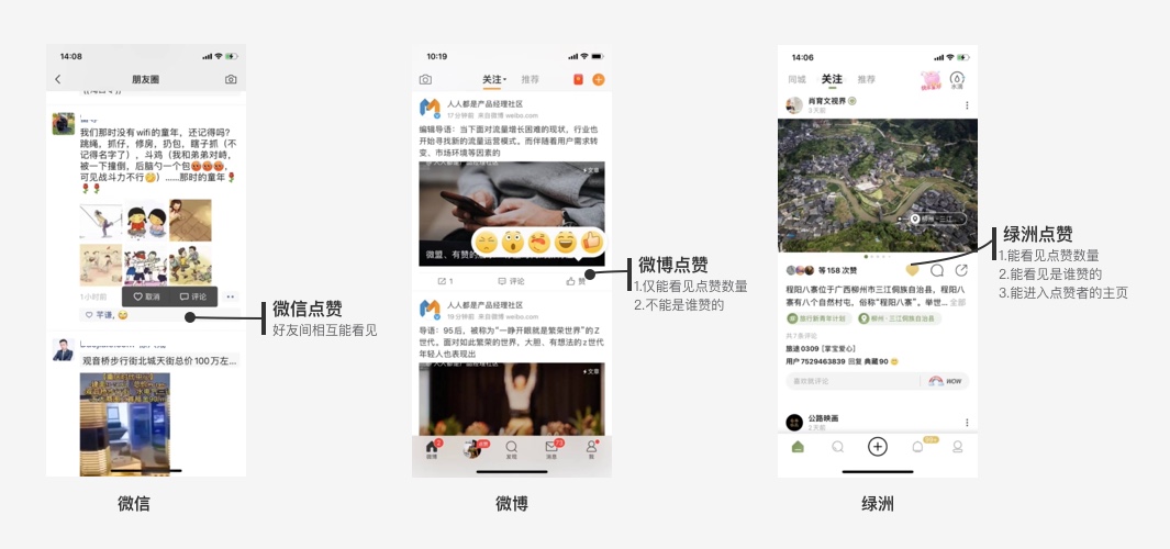綠洲:能看所有人的贊,且能進入個人主頁;可見贊數(shù)量