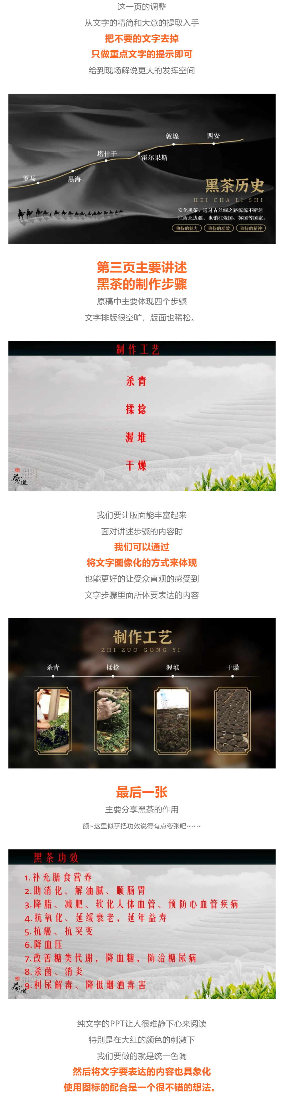 修改一份安化黑茶推廣的PPT,前后對(duì)比堪比整容。
