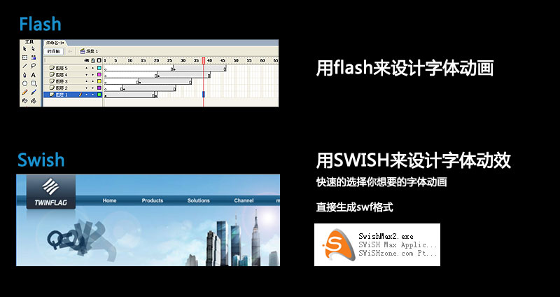 單純的網(wǎng)頁界面效果設(shè)計師也就是我們俗稱的UI設(shè)計常用的軟件也就是PS和AI了?,F(xiàn)在的世道就是這樣 如果你把平面的東西三維話他們就說你很牛。把三維的東西平面話他們也會說你很有想法。前提是你一定要會用軟件來豐富你的設(shè)計思路。在網(wǎng)頁設(shè)計中flash可以制作出各種動態(tài)效果,但flash也不是萬能的。要記住每一款軟件都有它特有的優(yōu)勢一定要把握優(yōu)勢利用優(yōu)勢才能在短期的時間內(nèi)取得你想要的效果。在flash banner的制作中做出各種文字的特效,是我們每天都在苦想的課題。利用幀和幀之間的穿差也能夠達到我們想要的效果。在費盡的同時你何不試試它呢?swish一款專為制作flash文字特效而設(shè)計的小軟件。相信你會喜歡上它的。