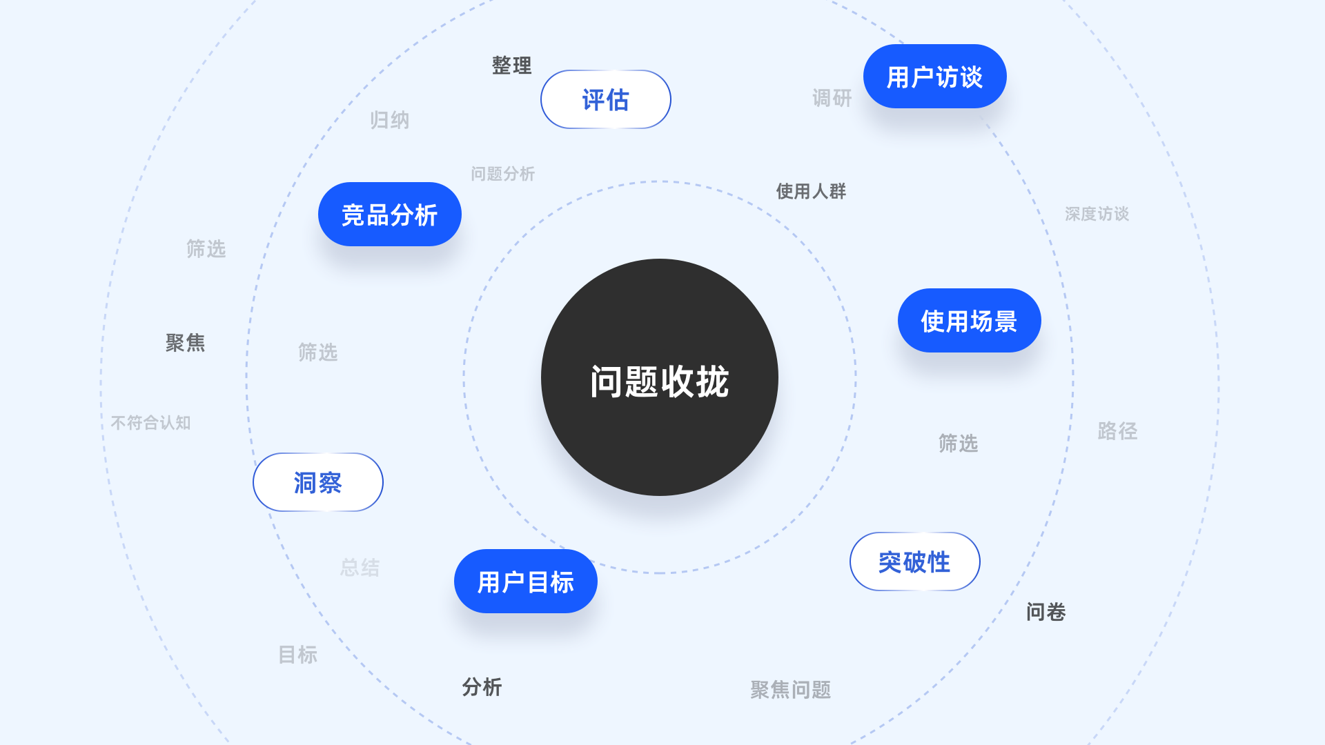 基于以上的用戶調(diào)研,我們需要發(fā)揮發(fā)散——收攏思維的一個過程: