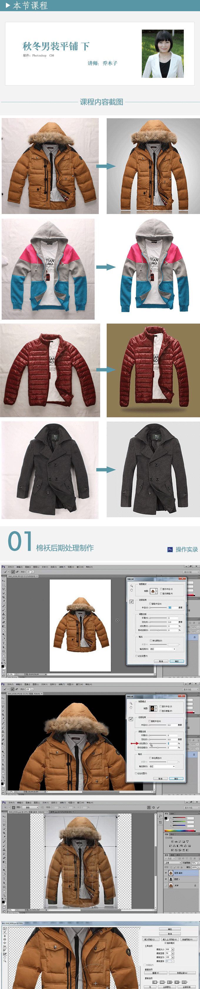 上節(jié)講解了秋冬男裝平鋪拍攝的造型布光,這節(jié)主要為大家講解拍攝好的男裝圖片,如何進(jìn)行后期調(diào)形處理,制作輪廓漂亮、造型立體的男裝圖片。