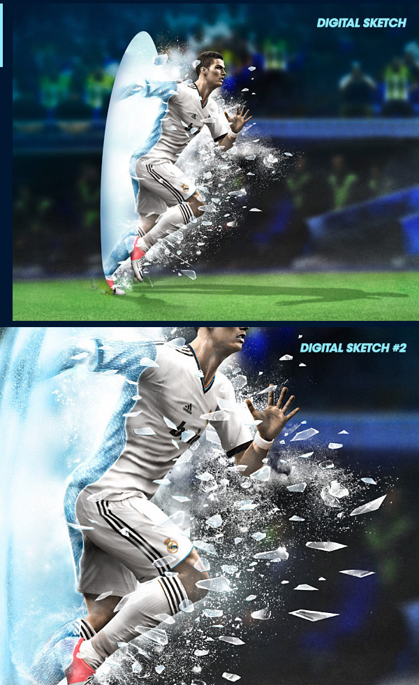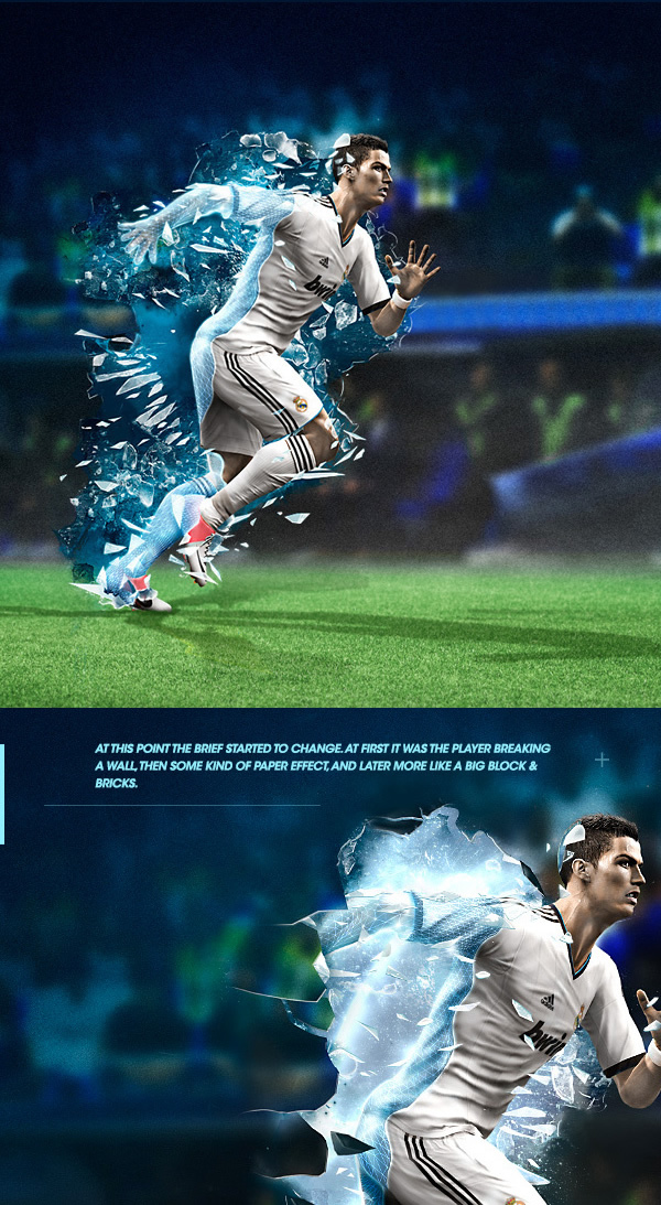 這些元素呈現(xiàn)為動(dòng)態(tài)效果和強(qiáng)調(diào)玩家的身體部位的破壞。一開始簡(jiǎn)要表示更多的破壞,玻璃效果和破碎的部分,但過(guò)程中改變了幾次。