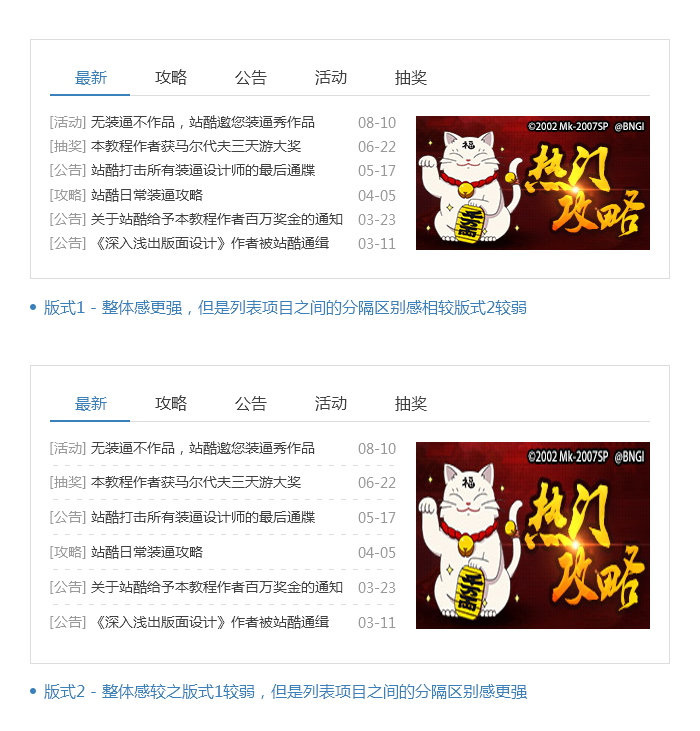 要知道怎么學(xué)習(xí)與運用版面設(shè)計的知識,必須得先知道版面設(shè)計的目的。這樣子你在學(xué)習(xí)時每個技法(知識點)時,就能主動或被動地去思考這個技法對應(yīng)的目的是什么,去思考這個技法的表現(xiàn)形式為什么能幫助設(shè)計師達(dá)到目的。在后期綜合運用多個技法進(jìn)行設(shè)計時,你就有能力根據(jù)你設(shè)計的目標(biāo)和畫面的感覺,來自如地增減相應(yīng)的技法。如下圖兩個版式很相似,不同之處在于根據(jù)設(shè)計目標(biāo)不同而對線的使用有所不同。