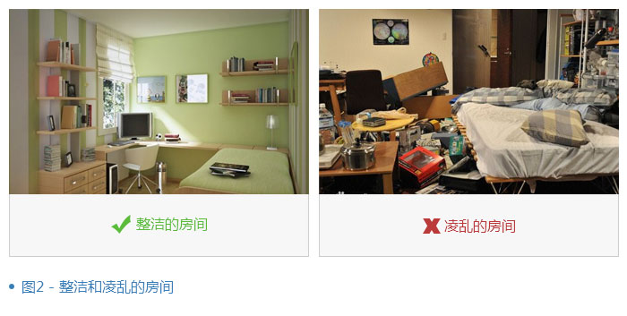 關(guān)于共識,我還想再舉一個常見的例子:文字排列整齊與散亂的區(qū)別。先看看兩個生活場景:整潔的房間和凌亂的房間(圖2)。