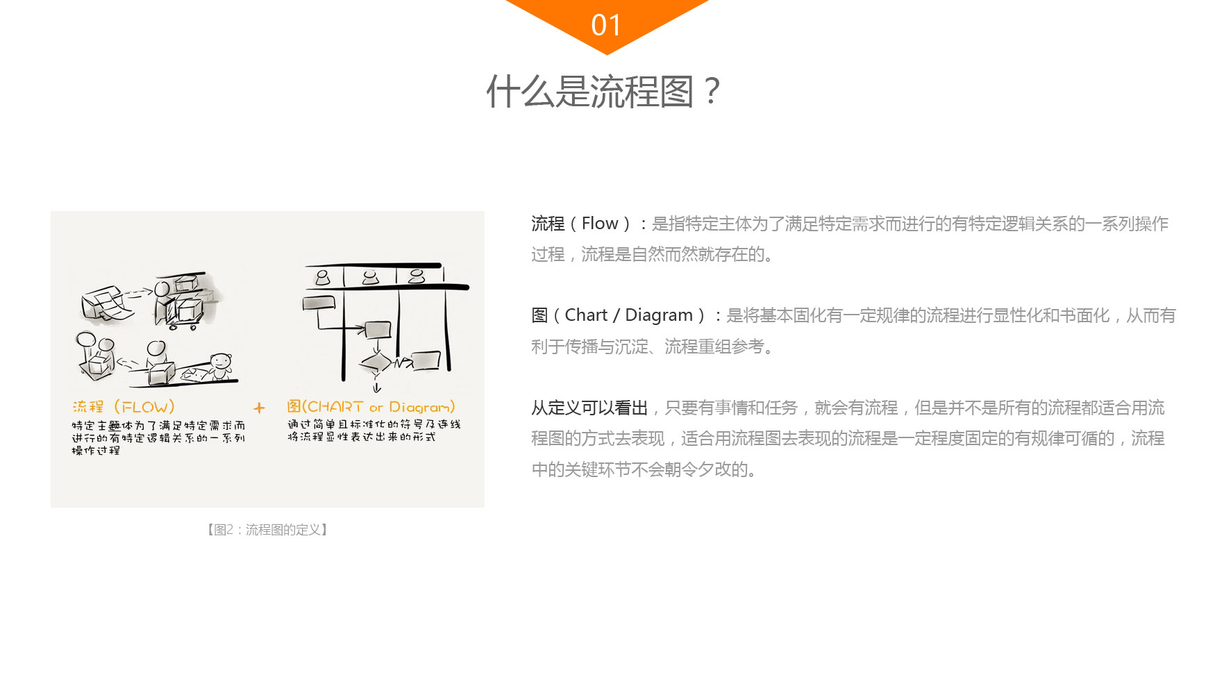 流程在我們生活、學(xué)習(xí)和工作中,一直自然而然地存在著?!傲鞒獭笔且粋€(gè)人思考問題、表達(dá)思維、展示邏輯和完成某件事的過程?!傲鞒虉D”是將基本固化有一定規(guī)律的流程進(jìn)行顯性化和書面化,從而利于傳播與沉淀等,在產(chǎn)品和交互的工作中尤為重要。