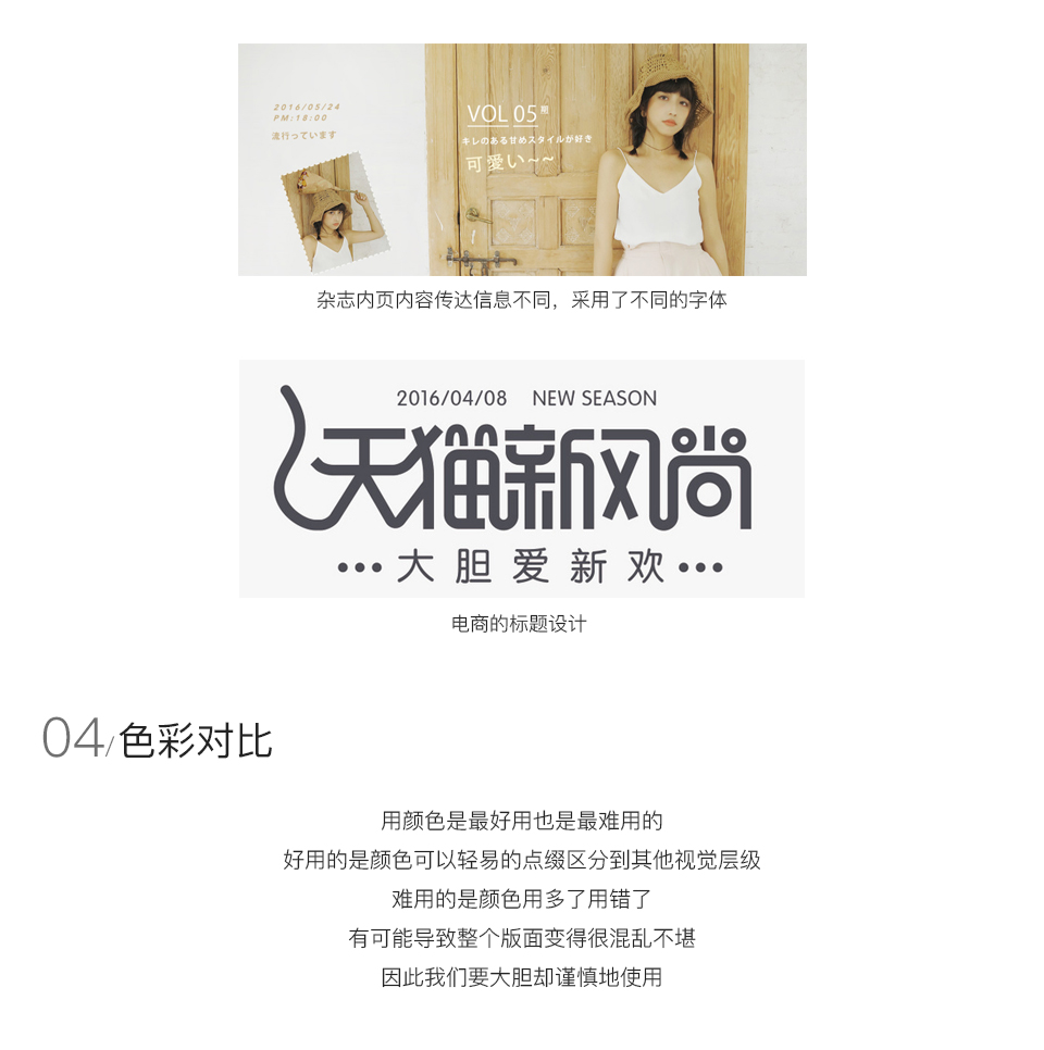大小/粗細(xì)/字形/色彩/對(duì)比