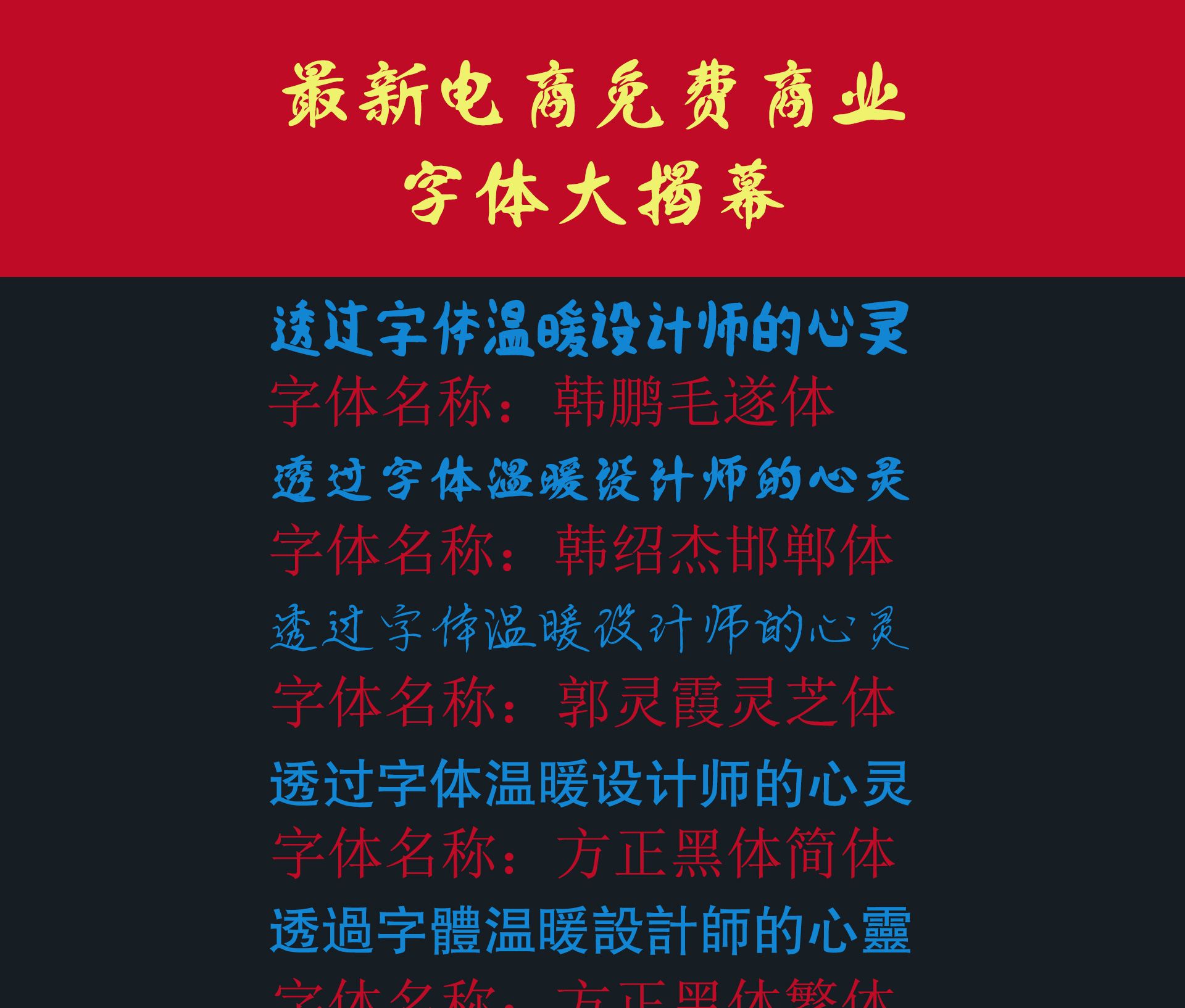 現(xiàn)在店鋪遭字體侵權(quán)投訴越來越頻繁,做為設(shè)計師的你是否愁壞了,下面我羅列了一下可以商用的各種中文字體(精品)
