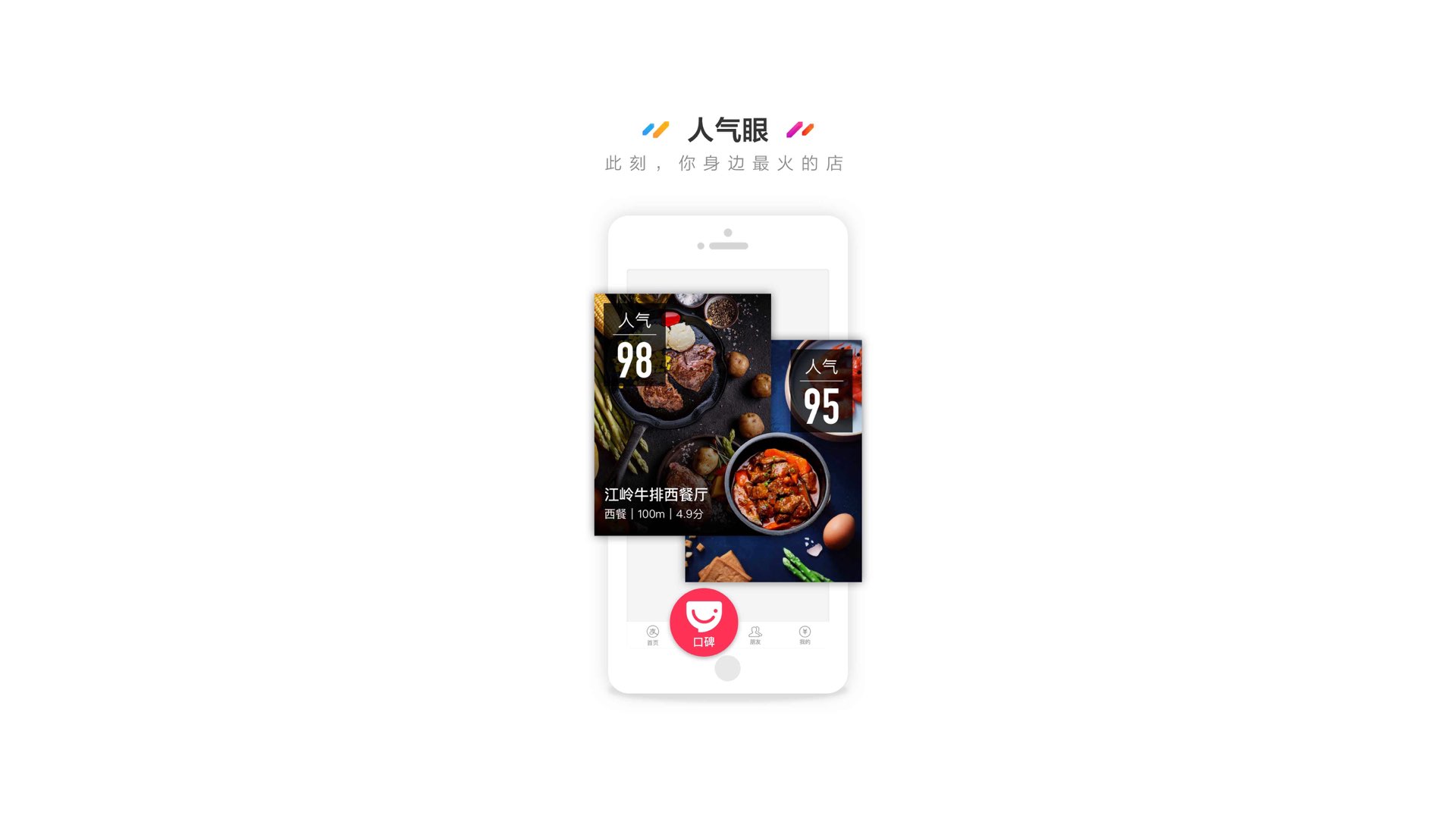 民以食為天,每日三餐吃什么?這個哲學般的問題,都困擾著我們??诒畯拿课皇晨偷慕嵌瘸霭l(fā),在不同的時間、不同的地點,提供給他們一些建議和幫助。這就是人眼氣,它是幫助用戶發(fā)現(xiàn)身邊人氣最旺商家的眼睛,當然人氣眼也遠不止于此。