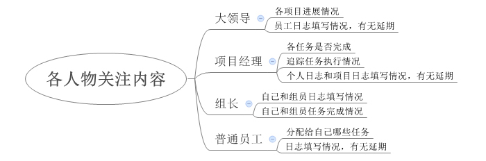 該app是屬于辦公軟件類型,使用人群是公司不同人員。根據(jù)前期的討論和網(wǎng)站現(xiàn)有內(nèi)容,我首先整理了使用該app的不同人物的關注內(nèi)容。