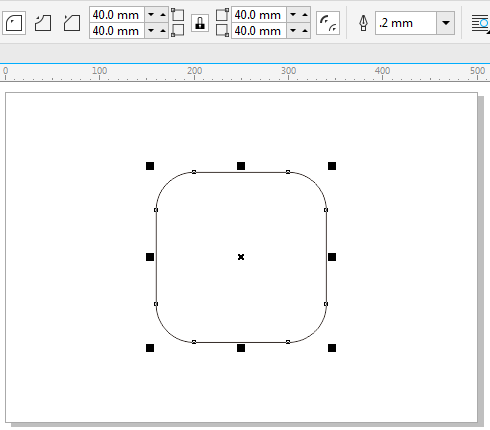 步驟二、輸入文本 在工具箱工選擇“矩形工具”按住Ctrl鍵繪制180*180mm正方形,調(diào)整屬性欄中半徑轉(zhuǎn)角為40mm,如圖所示。