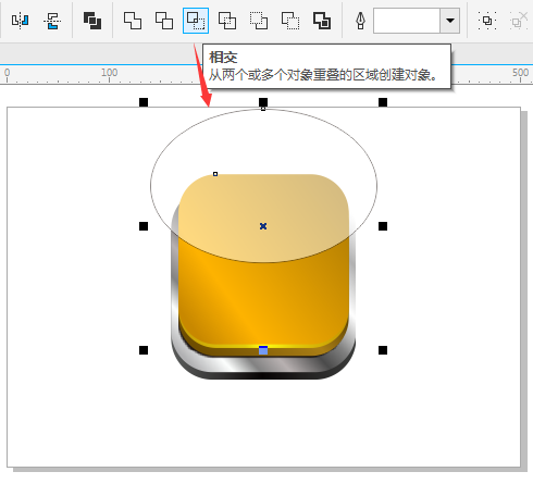 步驟十、繪制橢圓 使用“橢圓形工具”繪制一個(gè)橢圓,填充白色(這里為了能讓大家看的清楚,我將橢圓做了透明處理)。按住Shift鍵加選最上層的圓角矩形,然后執(zhí)行“相交”命令。相交之后的圖形默認(rèn)和底下圖形一樣的顏色,這個(gè)需要注意一下。然后將上層的橢圓刪除,只留下相交部分,并填充白色。