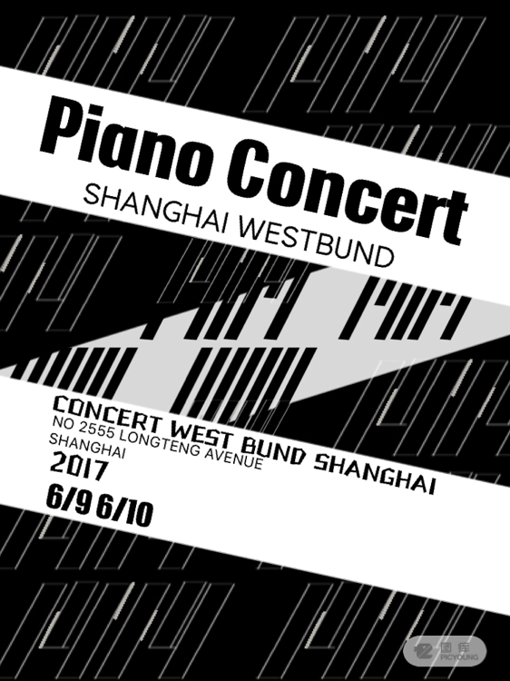 上面這幅作品是使用圖癢app的習(xí)作,可以看到,寬窄粗細(xì)不一的黑白色線條既是背景,又和諧融入畫面作為主題的一部分,既突出鋼琴黑白鍵的意象,又似悠揚(yáng)旋律,將海報的硬信息徐徐呈現(xiàn),并在整體視覺中充滿張力。使用圖癢app找到這個模板來試試看吧!