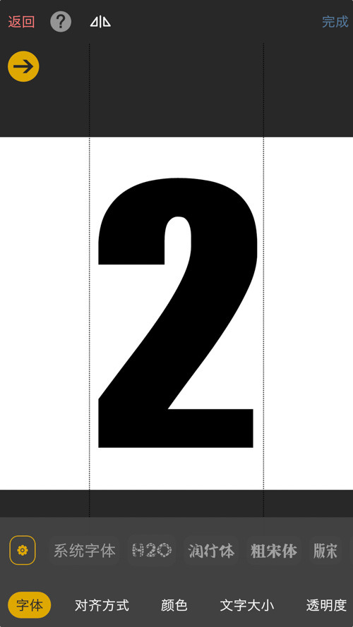 4.點(diǎn)擊遮罩—文字,輸入“2”并選擇合適的字體,點(diǎn)擊完成。