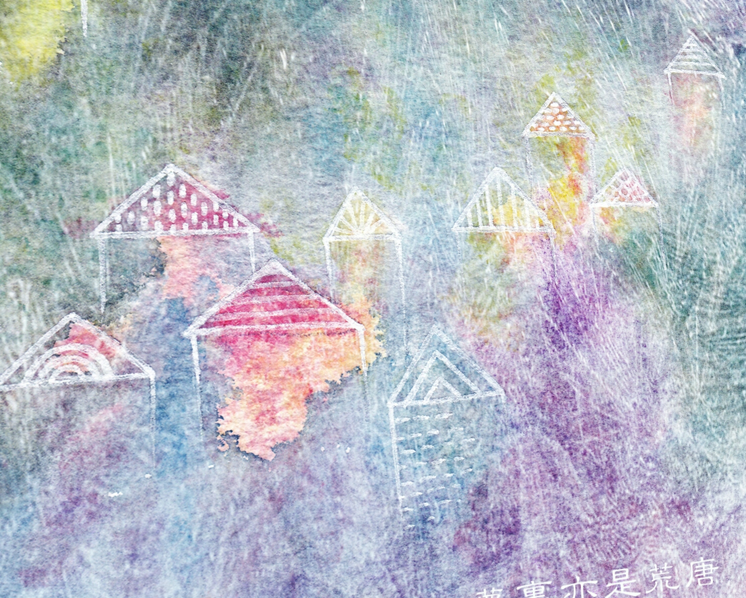 這個(gè)就有意思了,原本有一個(gè)準(zhǔn)確的畫(huà)面感覺(jué):大片的灰豆綠,圍繞著幾座小白房子。畫(huà)完竟成了這樣??刂撇涣宋矣泿住#ㄕ故揪植浚?/p>