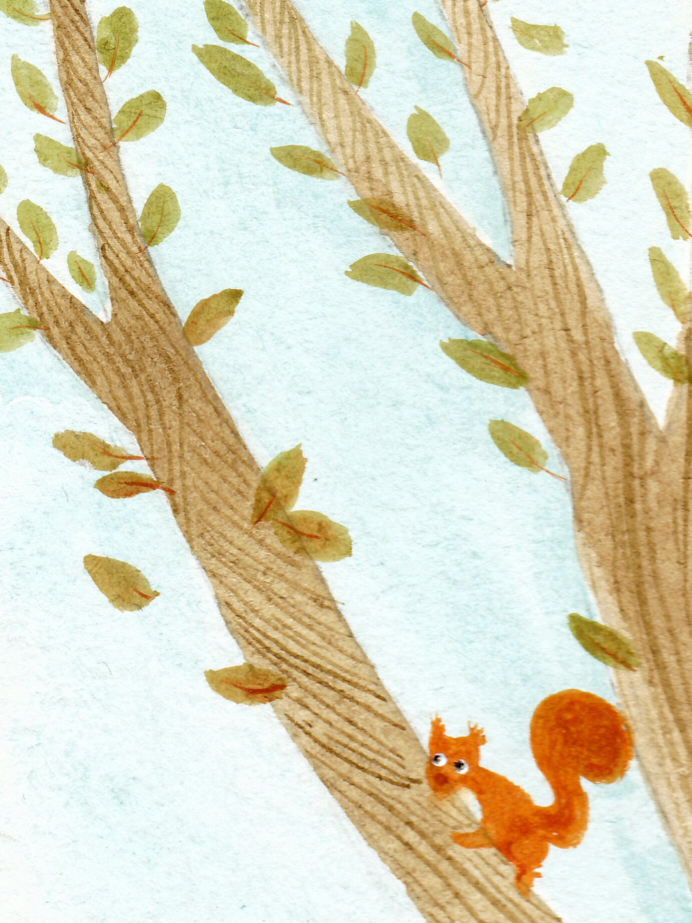 下面這張是顏色氛圍的嘗試。小松鼠的眼睛是立體的哦~(展示局部)