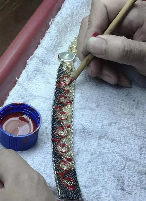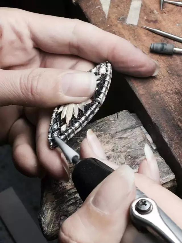 沒有這些工具,你即使擁有先進的機械,也無法將作品的層次美體現(xiàn)出來?!胺侣榧y理”、“花邊樣式”、“絲絨效果”和“雕塑雕刻法”等更是給珠寶與金銀制品帶來震撼人心的美感,也許這就是手工最迷人的地方。