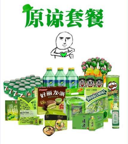 原諒派、綠綠雪餅、綠綠雪碧、綠綠海苔、綠綠薯片、綠溜溜梅、綠綠豆糕、綠綠綠箭、綠綠綠茶……