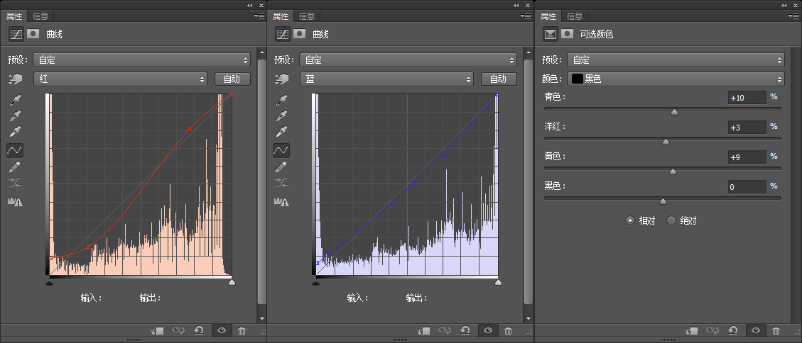 大體的色彩基本定型,然后用可選顏色和曲線調(diào)整一下整體的色彩,讓圖片更加自然(數(shù)值僅供參考)