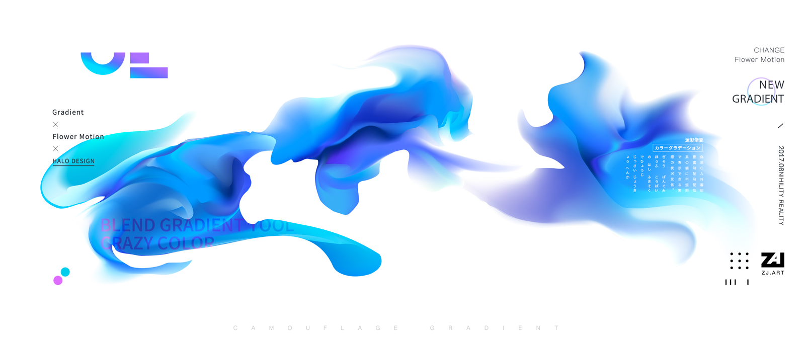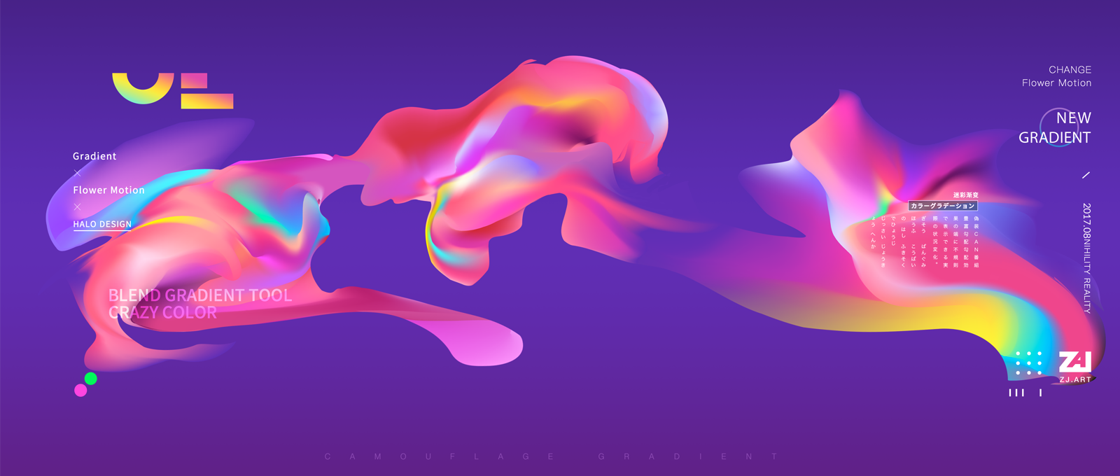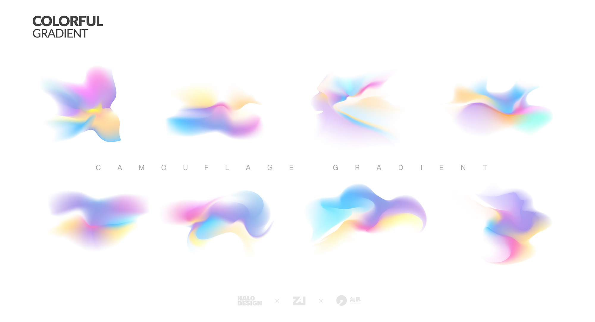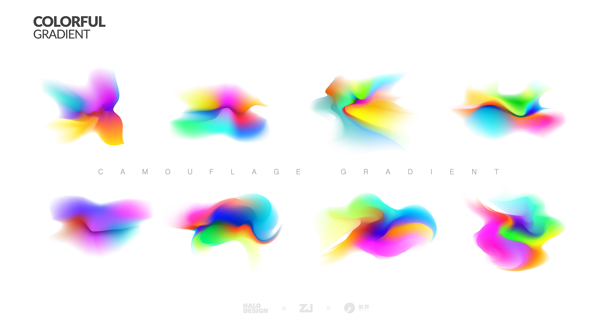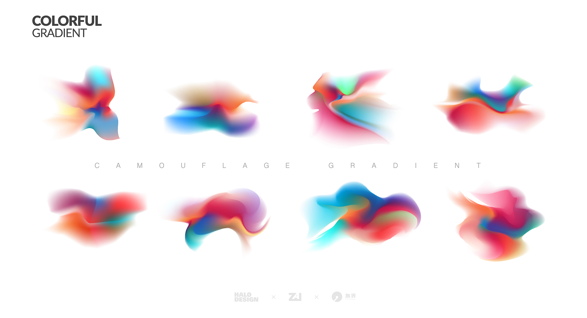 豐富的彩色不規(guī)則漸變加上實現(xiàn)造型上虛實的變化。
