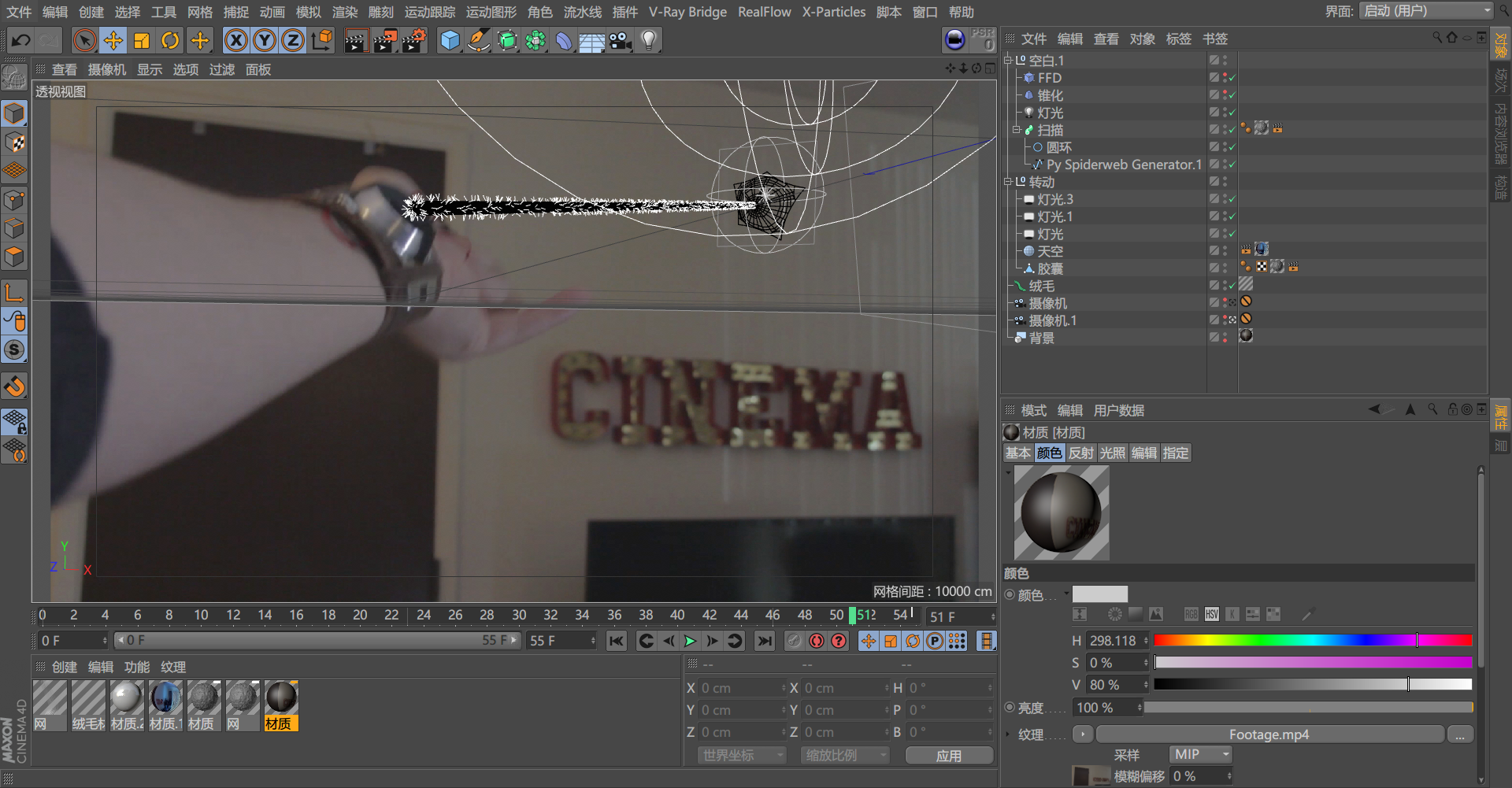 教程分為兩部,第一部分講解實拍影片的跟蹤技巧和通過C4D制作真實、多細(xì)節(jié)的蜘蛛絲動效。