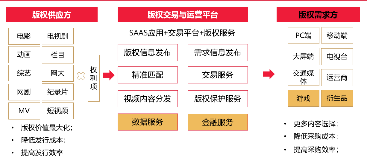 (2)B2B平臺(tái) + SAAS應(yīng)用 + 版權(quán)服務(wù) + 數(shù)據(jù) + 金融,切實(shí)服務(wù)產(chǎn)業(yè)用戶