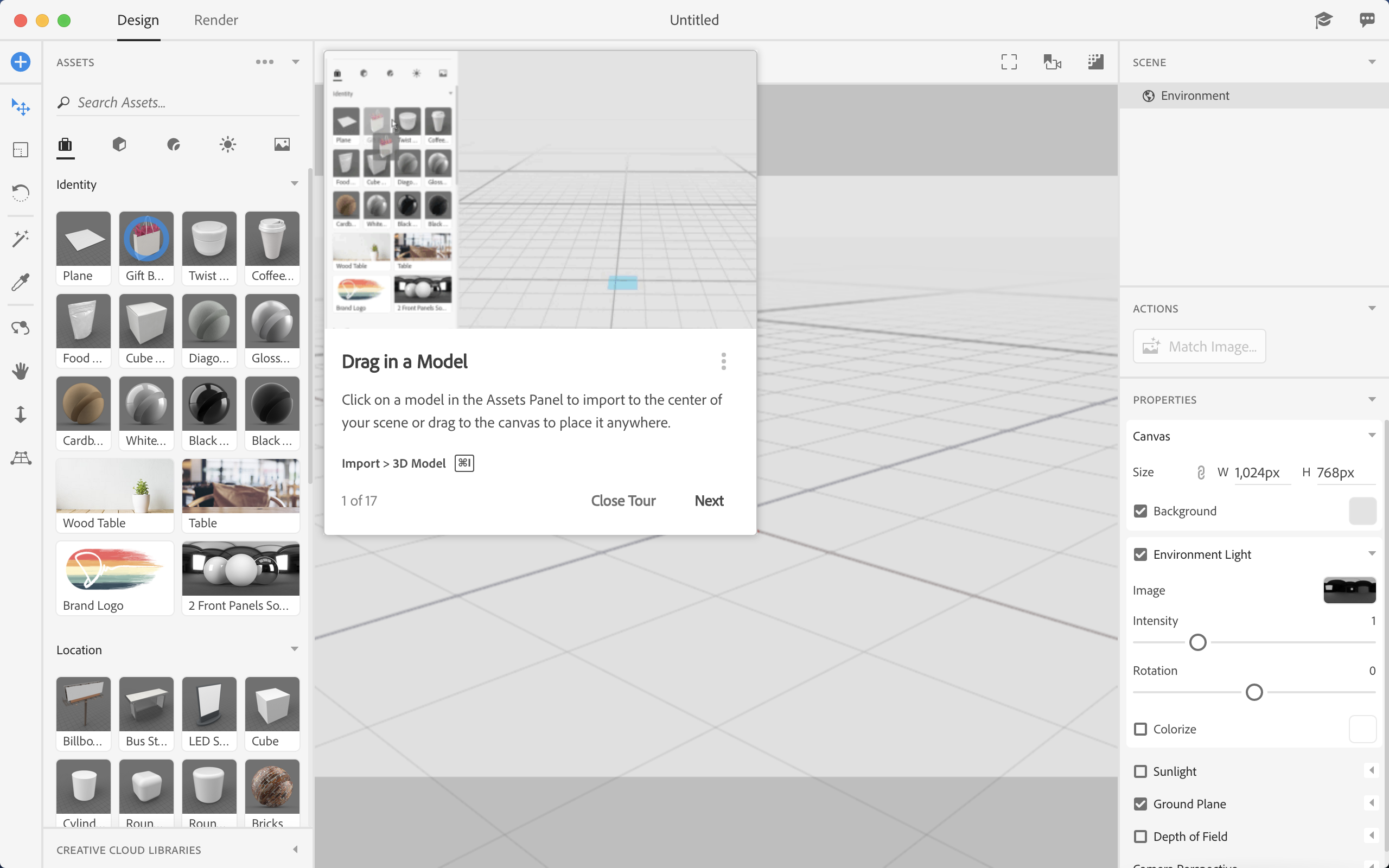 Adobe Dimension cc 啟動(dòng)頁面