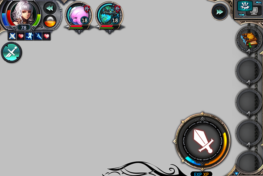 主要功能由:人物頭像、血條、藍(lán)條、PK、狀態(tài)、幻獸、地圖、任務(wù)、技能條、經(jīng)驗(yàn)條等功能(功能未確定處于討論過(guò)程)。
