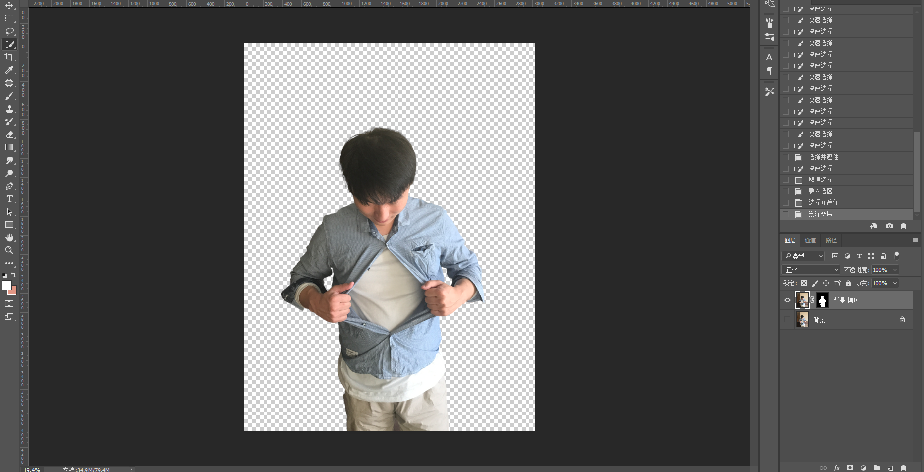 接下來(lái)再扣衣服中間的部分,可以ctrl+J復(fù)制一下剛才摳好的人物圖層,轉(zhuǎn)換為智能對(duì)象或再柵格化。