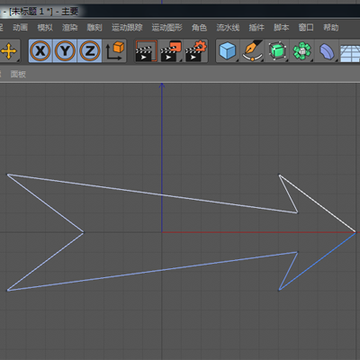 1.在視圖窗口中繪制想要的燕尾箭頭的效果,也可以在其他軟件中繪制完畢后導(dǎo)入到C4D中,建議打開工作平面網(wǎng)格點(diǎn)捕捉功能。