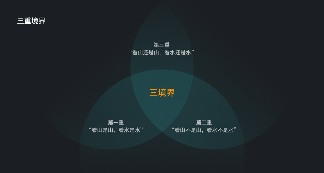 佛家觀世有三重境界:第一重境界是“看山是山,看水是水”;第二重境界是“看山不是山,看水不是水”;第三重境界是“看山還是山,看水還是水”。