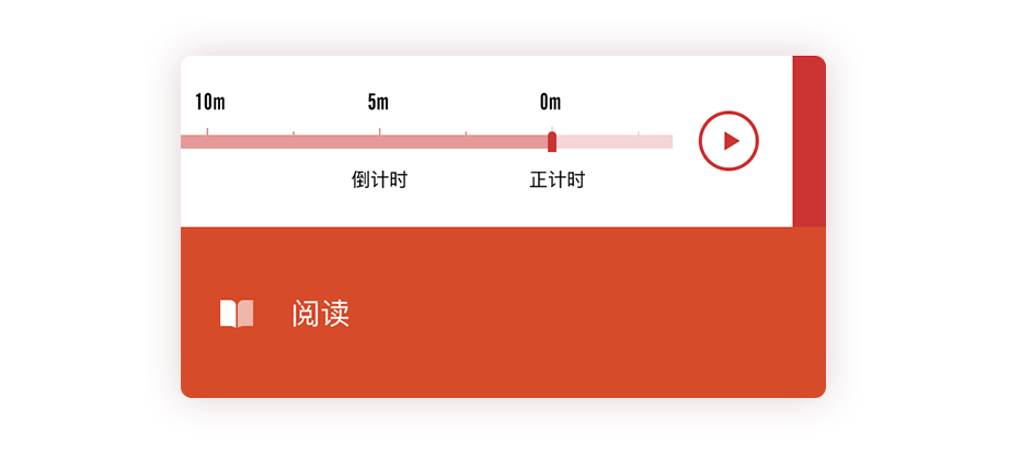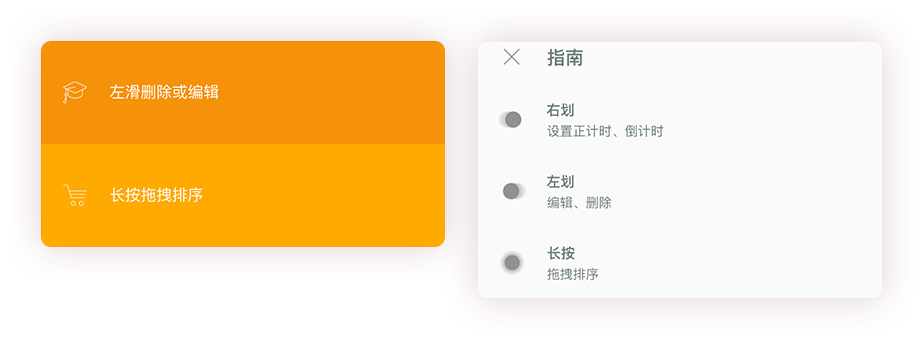 在功能上,正計(jì)時(shí)、倒計(jì)時(shí)設(shè)置放在右劃的操作上。