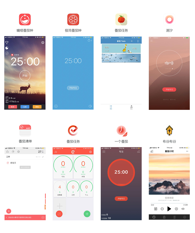 2、該APP是當(dāng)時(shí)對(duì)番茄鐘時(shí)間管理很感興趣的時(shí)候下的,同時(shí)也下過(guò)好幾個(gè)相關(guān)APP,覺(jué)得顏值該APP算是很高的,而且功能也很全,但個(gè)人認(rèn)為還有些需改進(jìn)的地方,于是就開(kāi)始了交互UI的重構(gòu)設(shè)計(jì)。