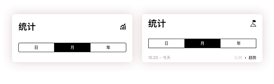 比例和趨勢(shì)間的切換移到與時(shí)間同行的位置,樣式在比例和趨勢(shì)的頁(yè)面形成統(tǒng)一。然后將成就圖標(biāo)放在右上角。