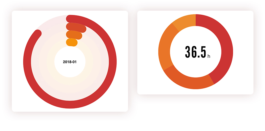 比例圖示還是用傳統(tǒng)的樣式,這樣的考慮是:占比更加直觀,另外可以展示4項(xiàng)以上項(xiàng)目。