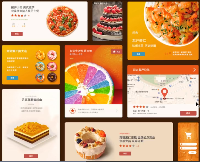 今天要講的這個(gè)例子是一個(gè)美食頁面的設(shè)計(jì),說到美食頁面我們首先想到的是暖色調(diào),鮮艷欲滴的那種感覺。先來看一下頁面的設(shè)計(jì)稿。