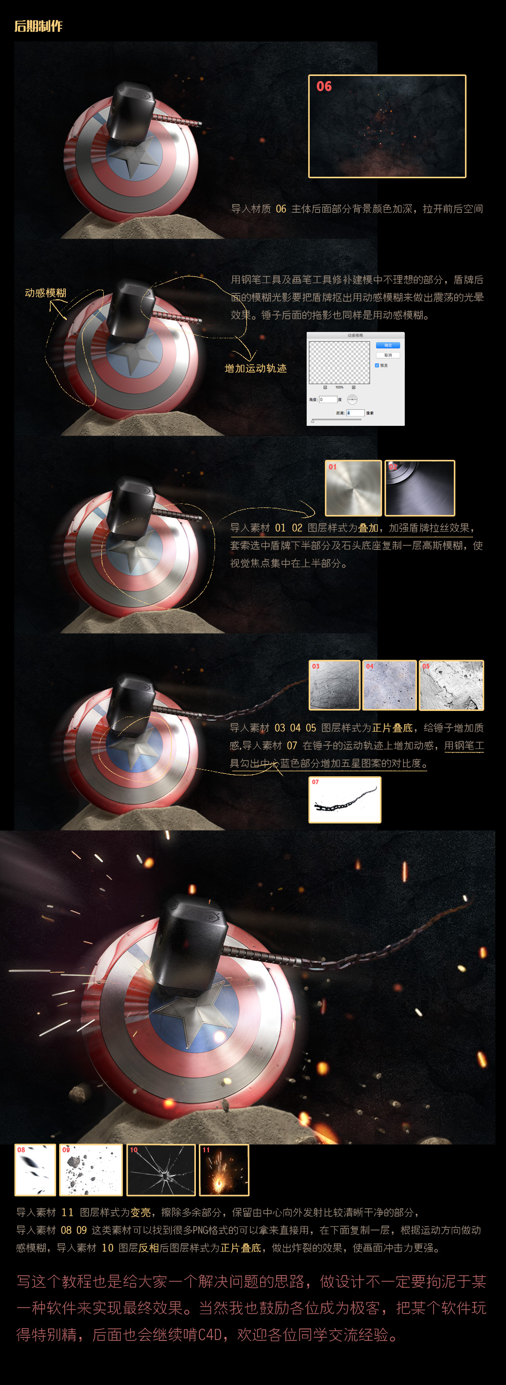 最近受我家老頭之邀,為他設(shè)計一張VIP專屬電腦桌面,他要美國隊長盾牌和雷神錘的世紀(jì)碰撞,OMG他還要性感的拉絲和炫酷的火花……