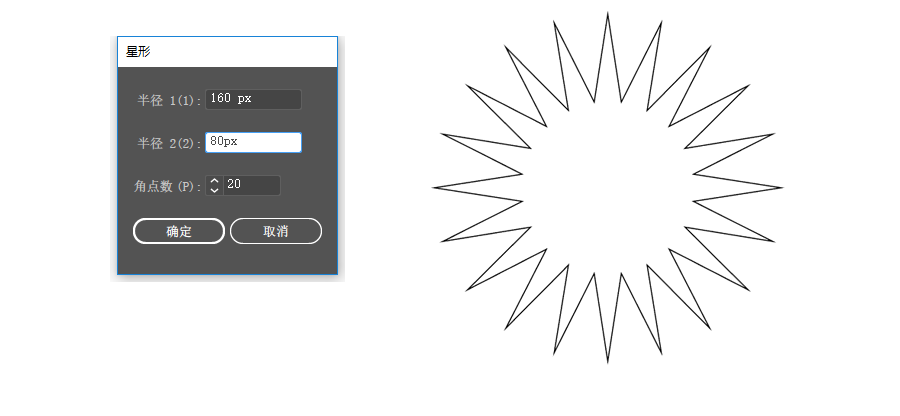 3.選用五角星工具,后,再空白地方單擊左鍵,出現(xiàn)對(duì)話(huà)框,填寫(xiě)數(shù)值,得到我們需要的多角形。