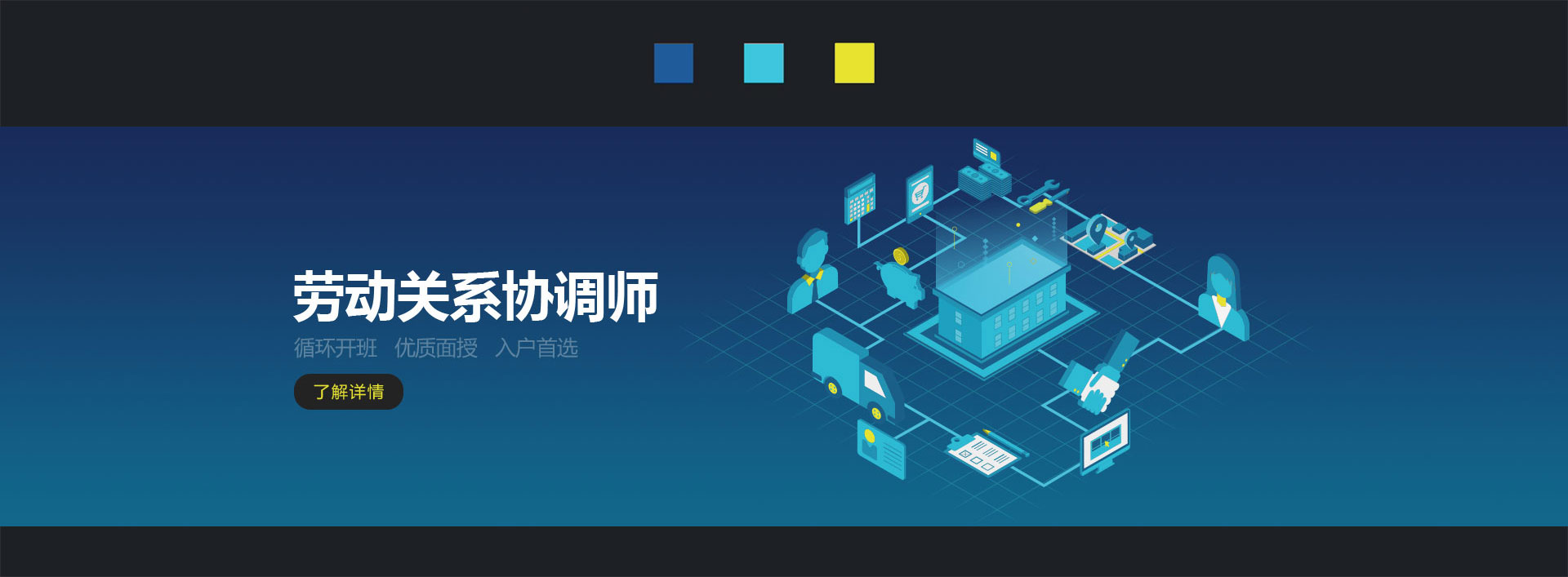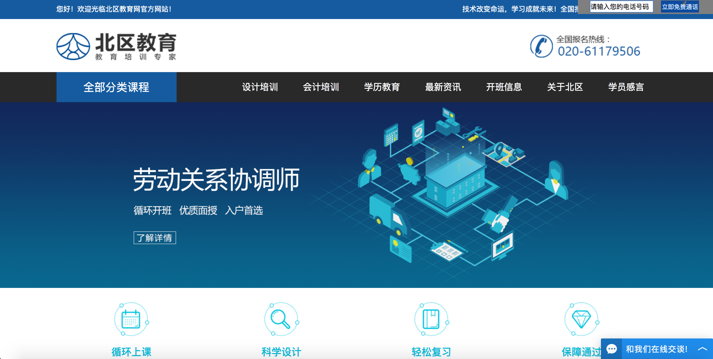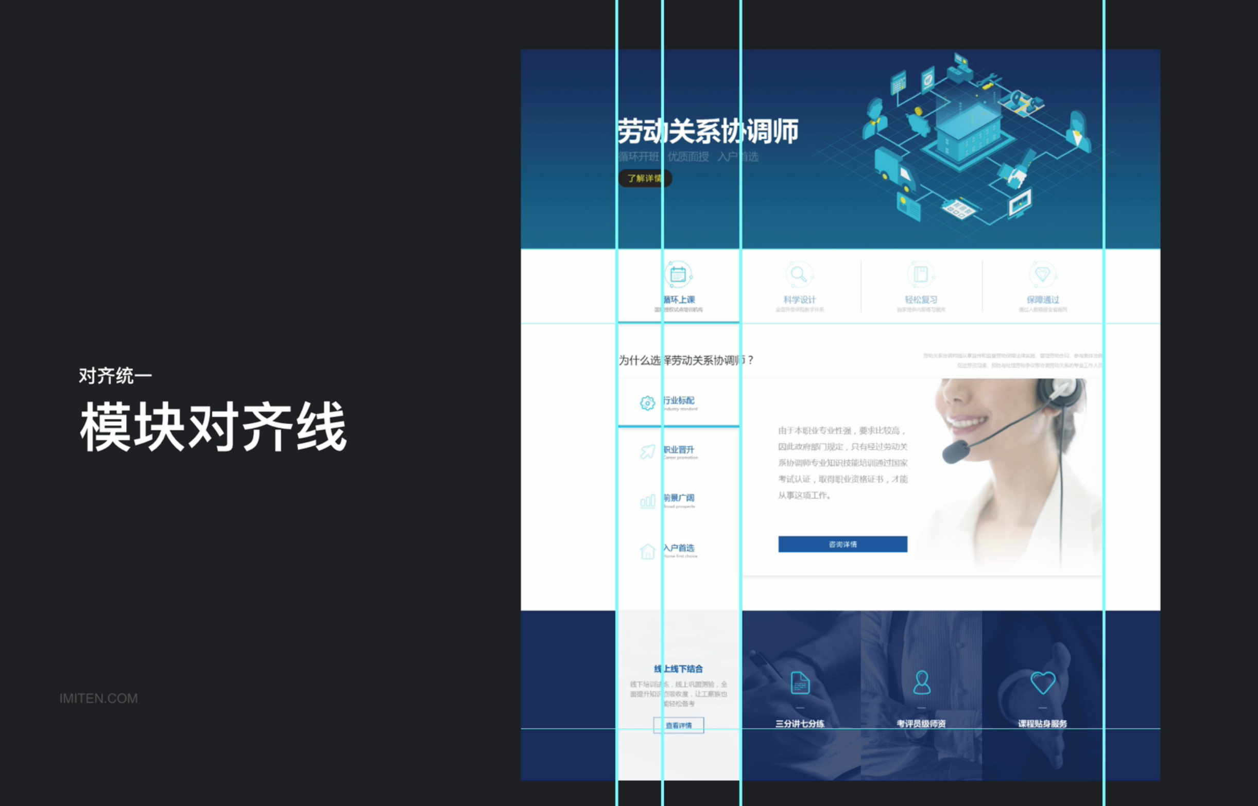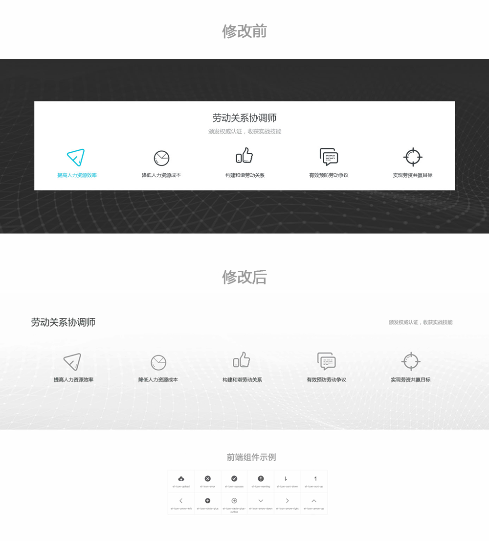 這是一個(gè)勞動(dòng)關(guān)系協(xié)調(diào)師的招生宣傳網(wǎng)頁(yè),偏內(nèi)容視覺展示,老板想要藍(lán)色商務(wù)風(fēng)格,上線后發(fā)現(xiàn)頁(yè)面好像平淡了些,不能讓人眼前一亮。