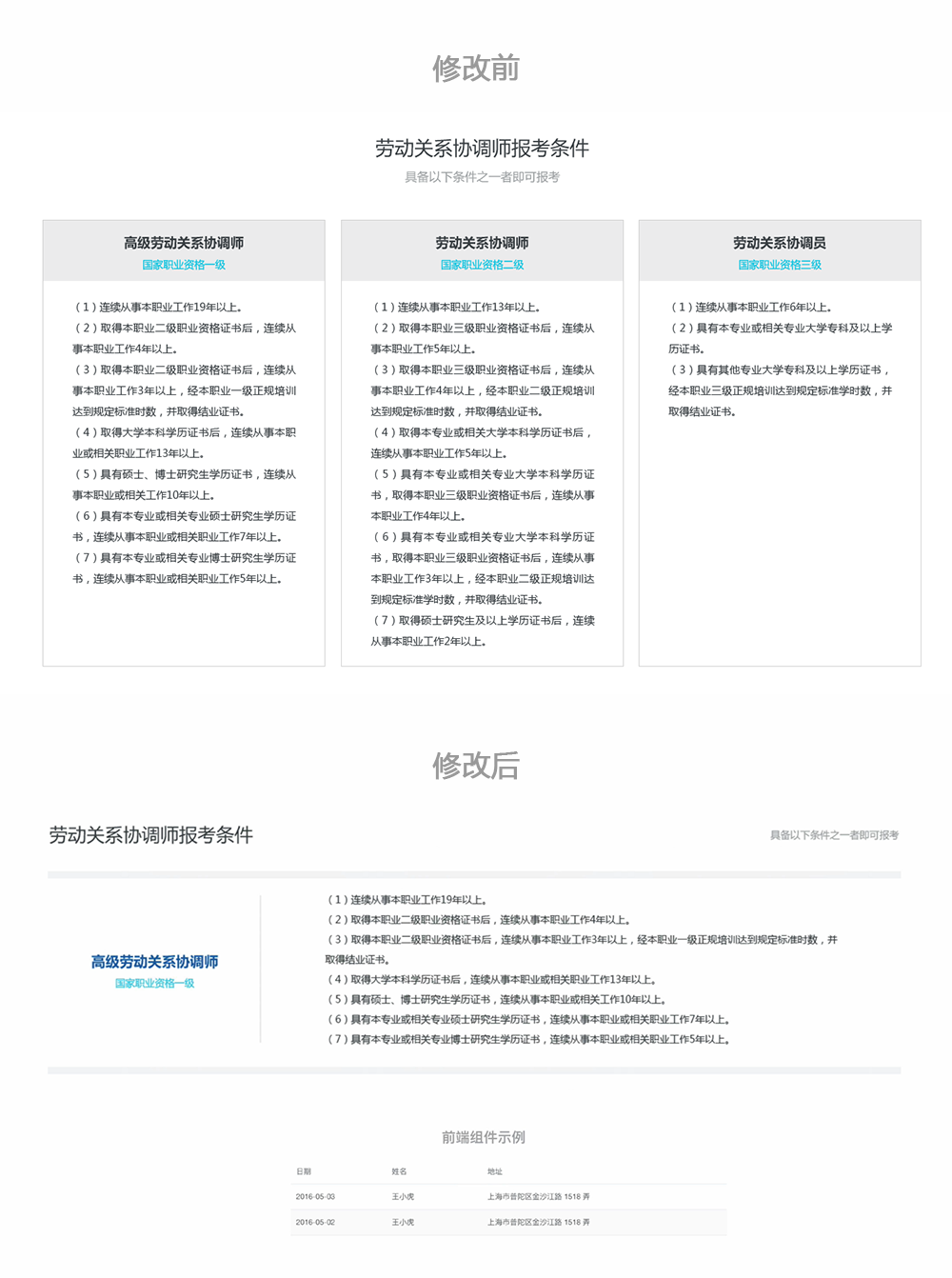 修改后的頁(yè)面左側(cè)會(huì)有很明顯的引導(dǎo)線,陰影大小統(tǒng)一,模塊之間的藍(lán)色指示條樣式相同,大小一致,頁(yè)面左右兩邊嚴(yán)格對(duì)齊,讓人感覺板式統(tǒng)一,強(qiáng)化對(duì)齊感。