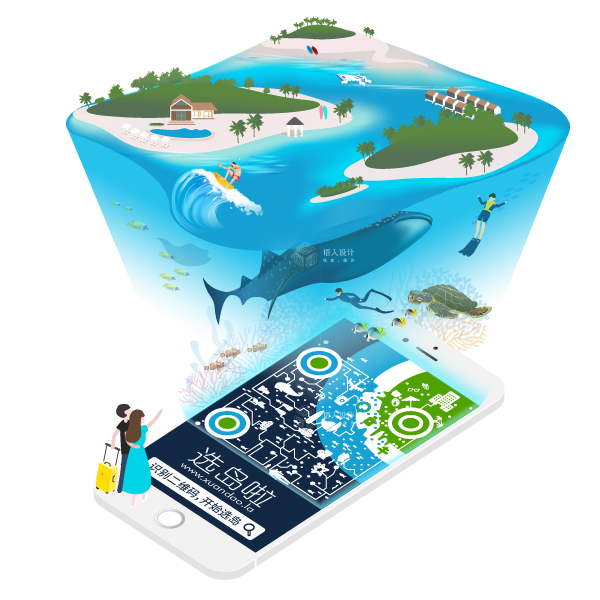 手機(jī)為平臺的二維碼載體:可以直觀地看到,基本就是馬代旅游項(xiàng)目元素的扁平組合。