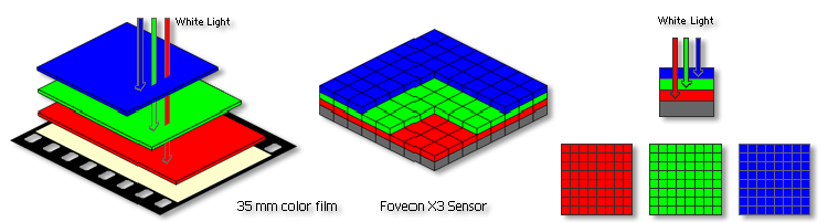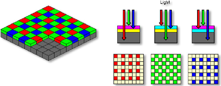這種感光元件每層的像素?cái)?shù)就是相機(jī)的像素?cái)?shù)。