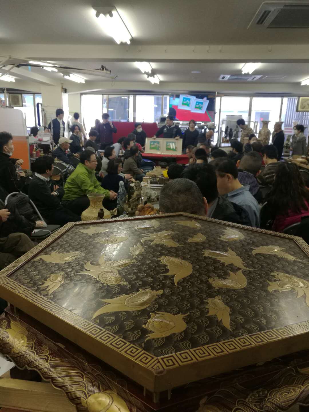 很快傳到拍賣師,拿起來一萬(日元)起拍,場里馬上應(yīng)價(jià)加價(jià)的,老韓對拍賣師舉起了一個(gè)巴掌。