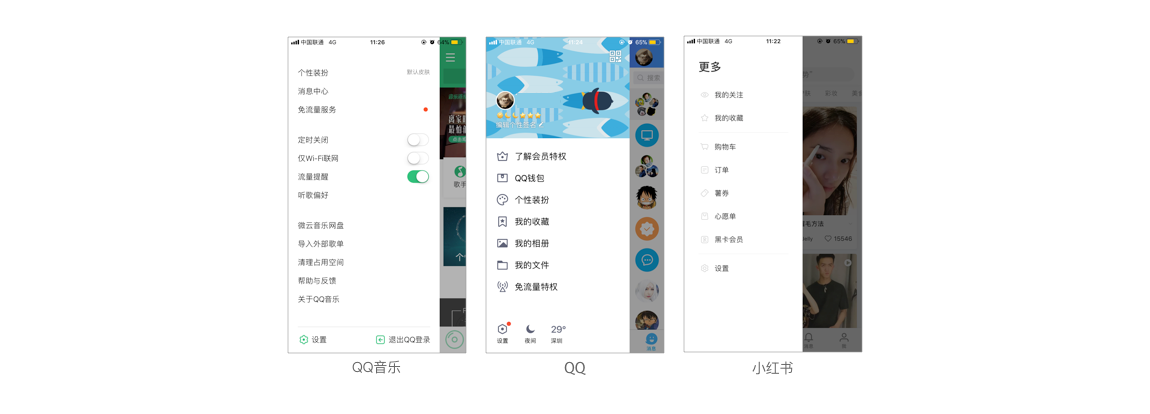 - 交互方式:從左邊彈出,或者是從左邊連接著前一個(gè)頁面滑出兩種方式;