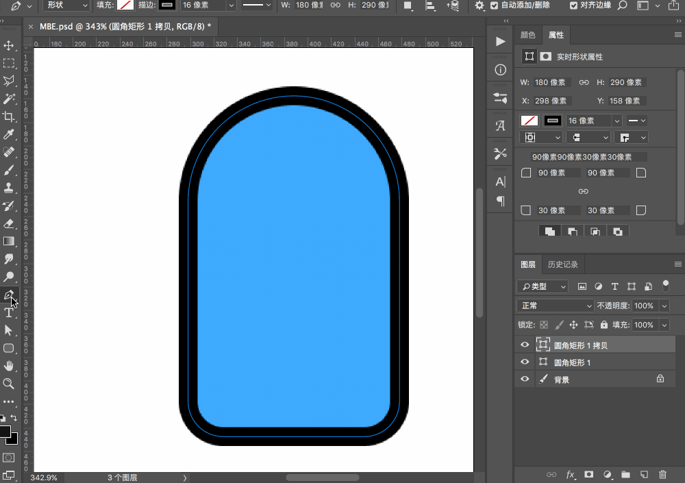 新建圓角矩形,調(diào)整圓角大小。