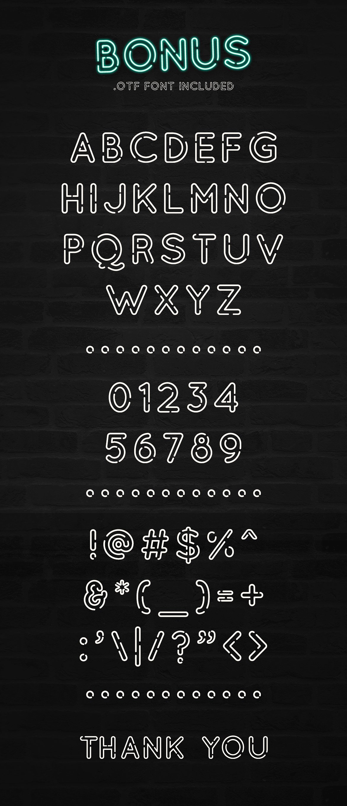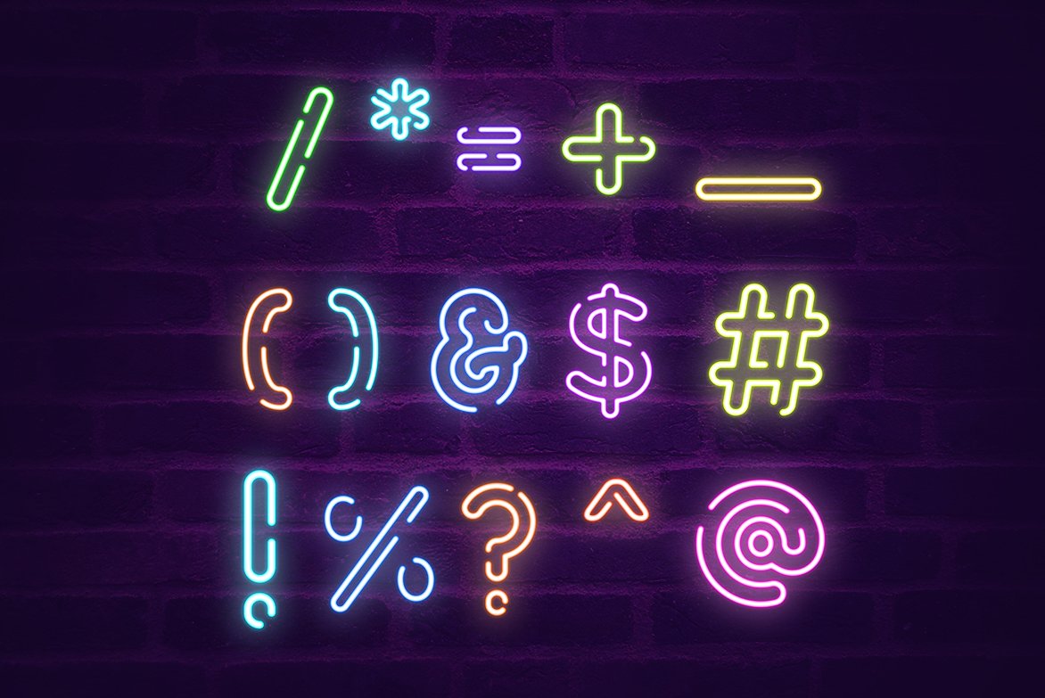 這次我分享只是NEON ONE這款字體,它包含了數(shù)字與符號,可免費用于個人和商業(yè)用途。接下來一起看實物吧: