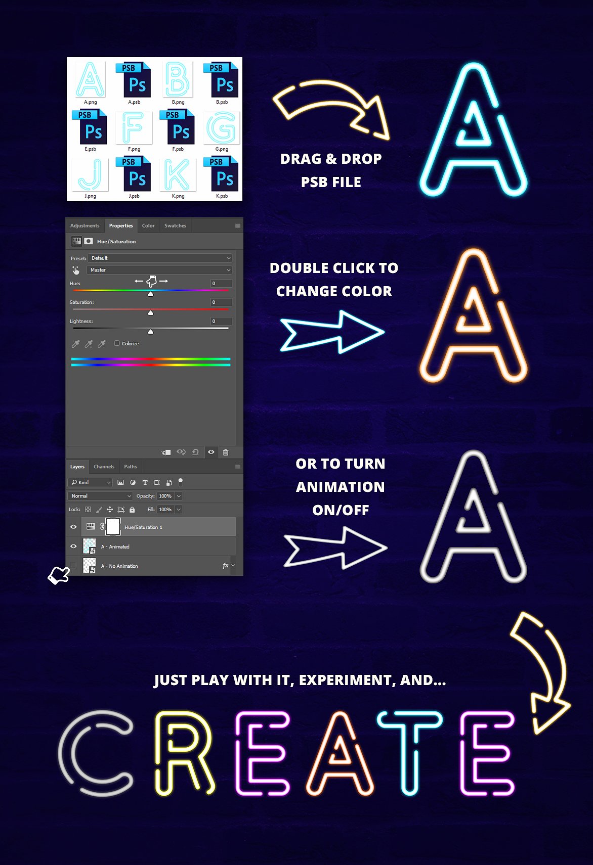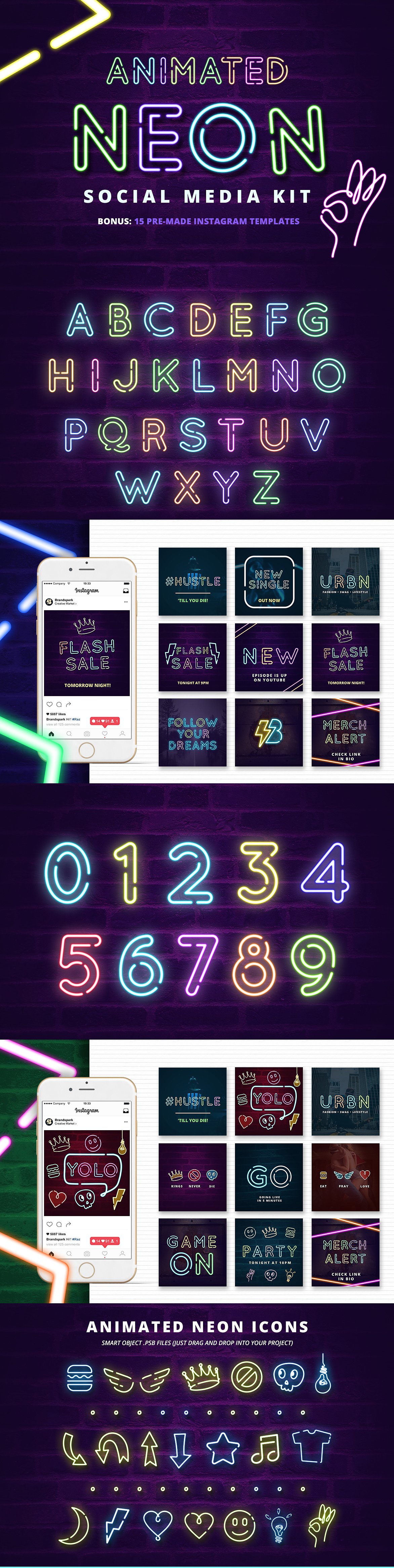 完整的動畫霓虹字母(包括數(shù)字和符號)
