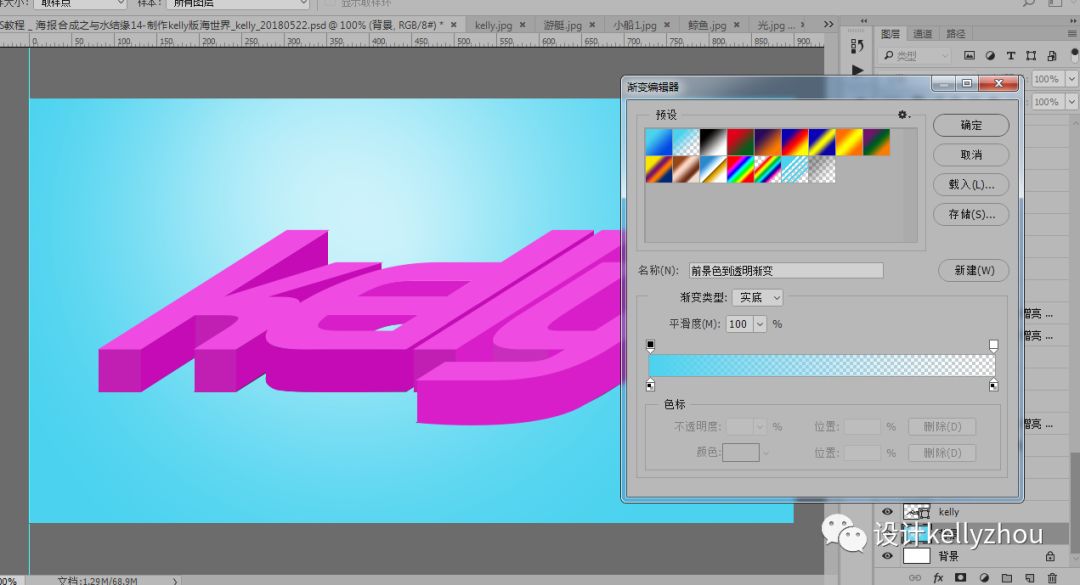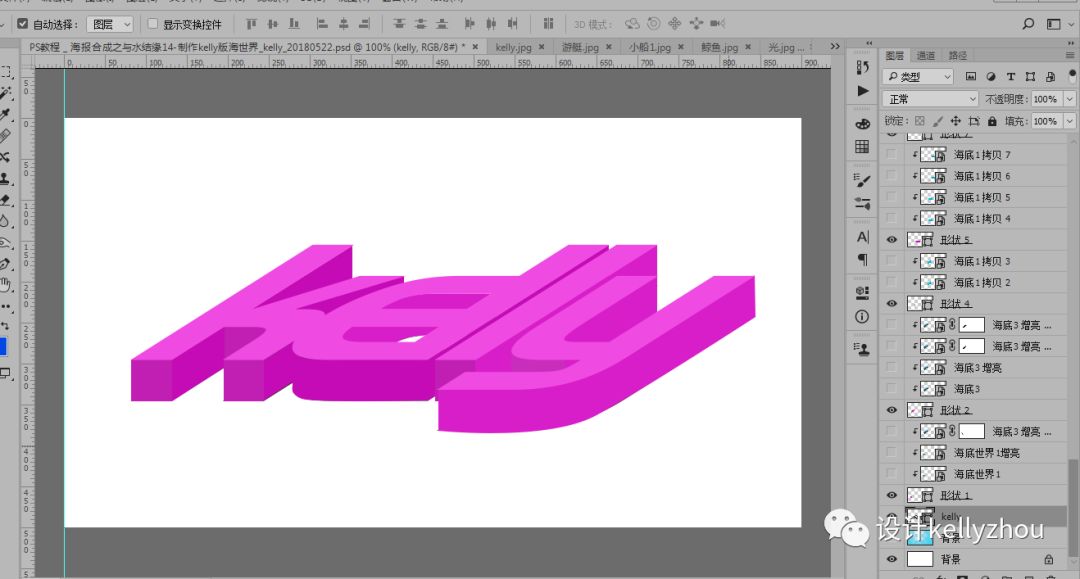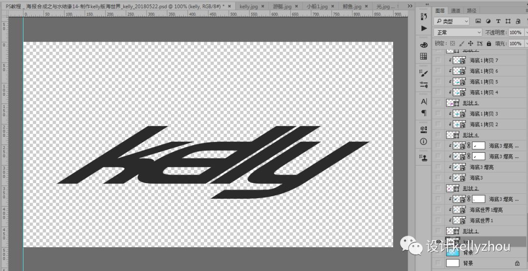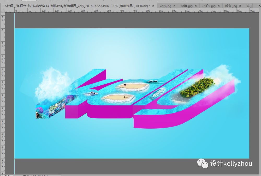 這幾天我看了一些好看的水中世界,我被深深吸引著,然后突發(fā)奇想用kelly這幾個(gè)英文自己來做一個(gè)有海的文字。