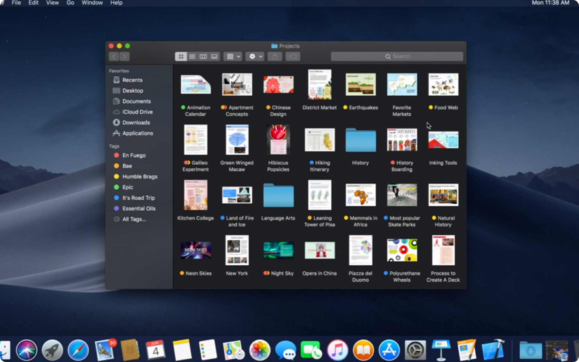 此次 macOS 的更新主要包括:新增夜間模式、重新設(shè)計(jì) Mac App Store、加入桌面堆棧(Stacks)功能、為 Finder 加入 Gallery View 功能、增強(qiáng)了 Safari 的安全性。