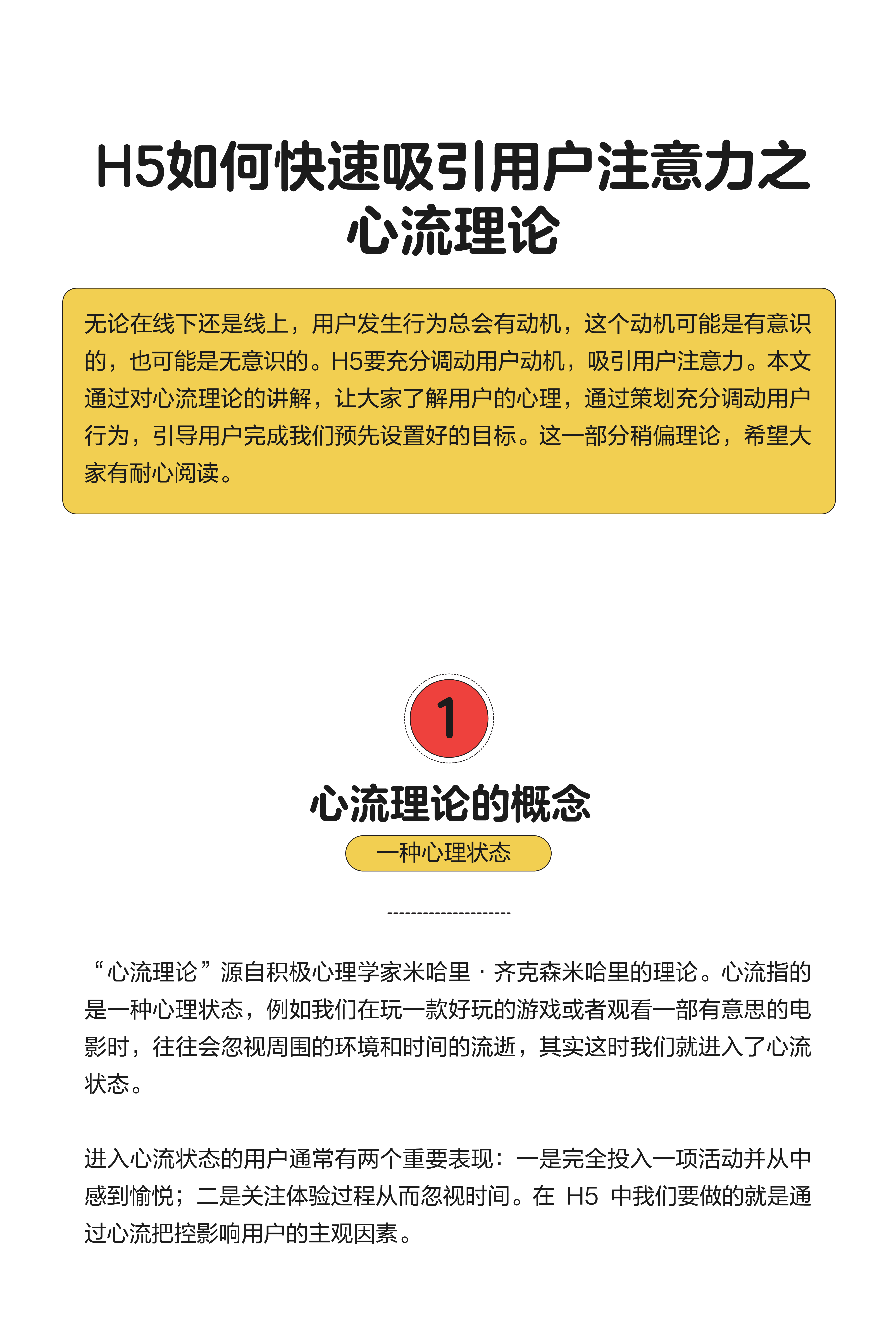 通過(guò)引用心流理論來(lái)論述如何對(duì)用戶瀏覽H5的節(jié)奏進(jìn)行控制